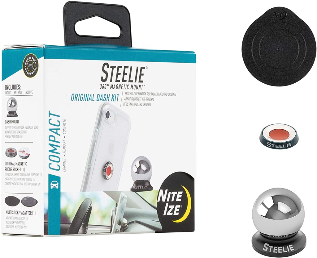 Something that both my husband and I have on our phones is this awesome magnet. You adhere it to the back of your phone, or phone case, and it will connect to anything metal. Along with connecting to fridge doors, gym rigs, or your golf cart railing, it also comes with this dashboard ball. That metal ball will adhere anywhere in your car – mine is right below my air vent in my car. Your phone will connect to that metal ball with your magnet, and volia – hands-free and staying put. It is so fun to use!